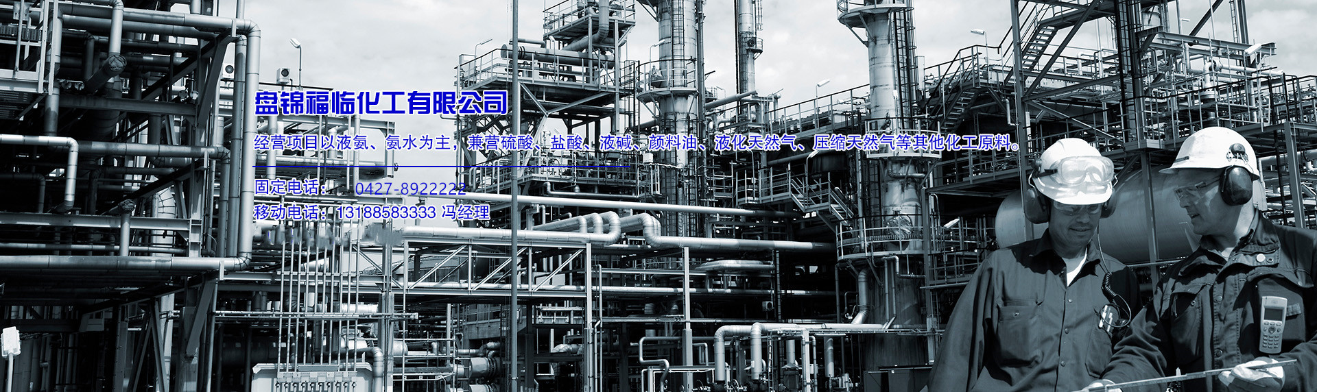 盤錦福臨化工有限公司,成立于20115月份,經營項目以液氨、氨水為主,兼營硫酸、鹽酸、液堿、顏料油、液化天然氣、壓縮天然氣等其他化工原料。本公司是一家從事化學品經營的企業,現有職工20余人,專業技術人員3名?,F有液氨槽車4臺。氨水車2臺。液氨鋼瓶30多個,產品暢銷遼寧省內外。